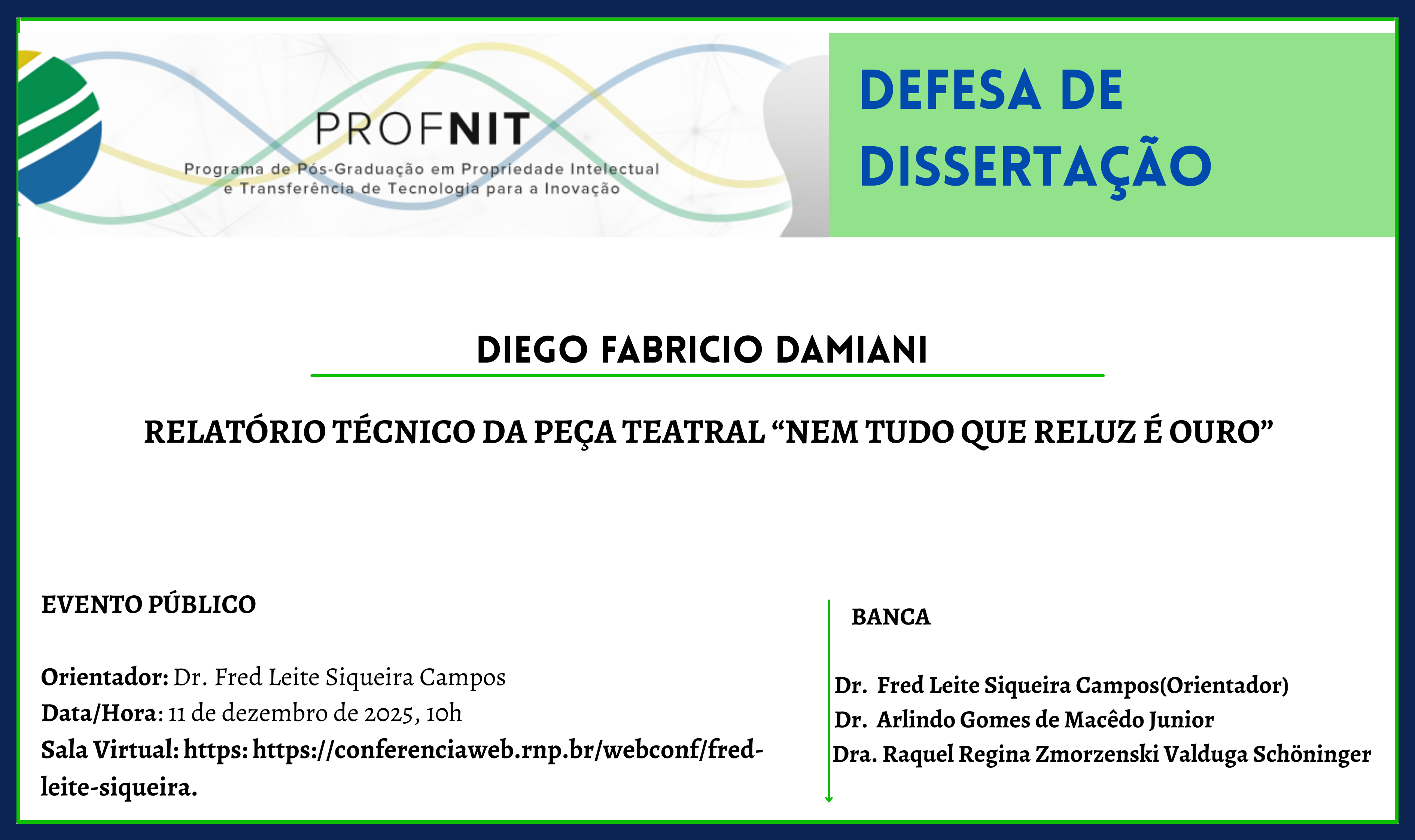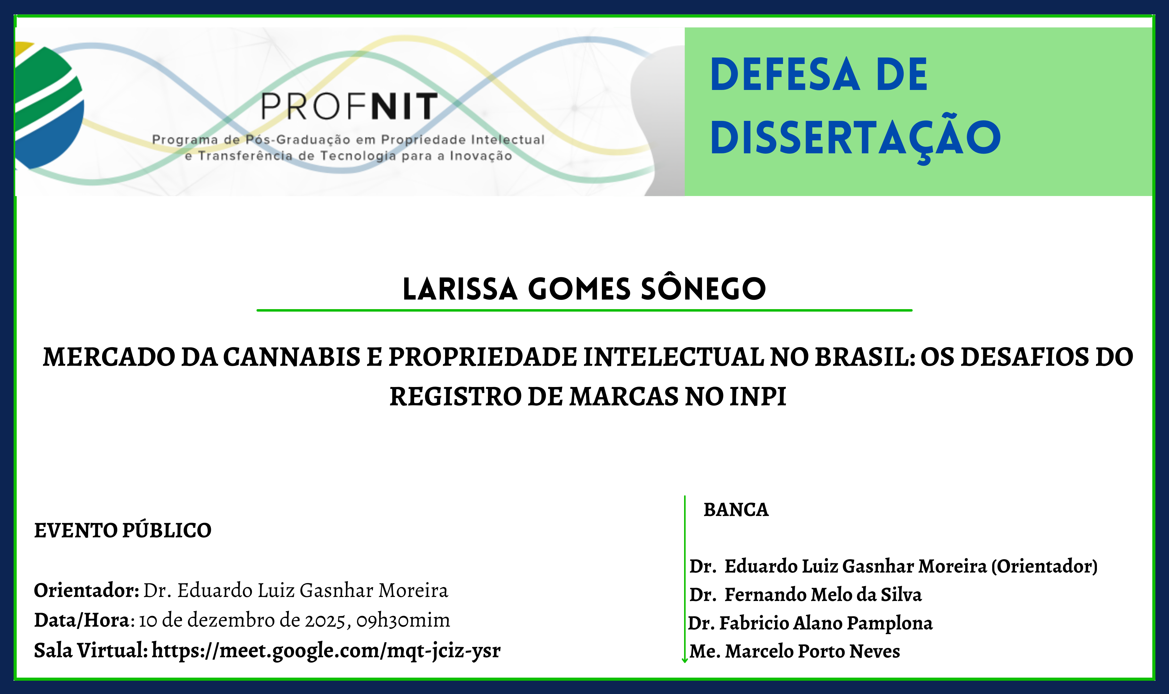 #PROFNIT #UFSC #PropriedadeIntelectual #Inovação #PósGraduação #DefesaDeDissertação #INPI #Cannabis #MarcasEPatentes #Pesquisa #CiênciaBrasil